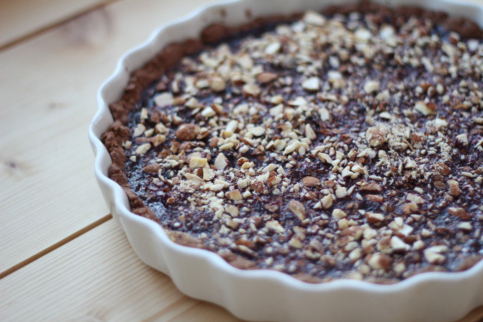. Pečeme 12-15 minut. Pokud je korpus na omak upečený, potřeme jej náplní a posypeme mletými mandlemi. Pečeme ještě asi 10 minut. Necháme vychladnout a můžeme servírovat